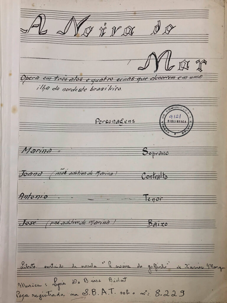 Transcrição: Com o objetivo de facilitar a leitura e a execução da ópera “A Noiva do Mar” nós realizamos a transcrição dos manuscritos da redução para piano. Dito de outra maneira, nosso grupo transferiu para um programa de computador todas as notas, dinâmicas, articulações e textos presentes na obra, trazendo clareza e uniformidade à escrita musical.